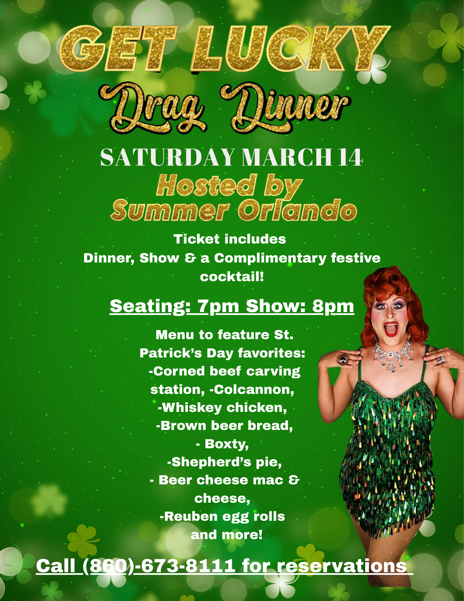 Saturday, March 14th — “Get Lucky” Drag Dinner
